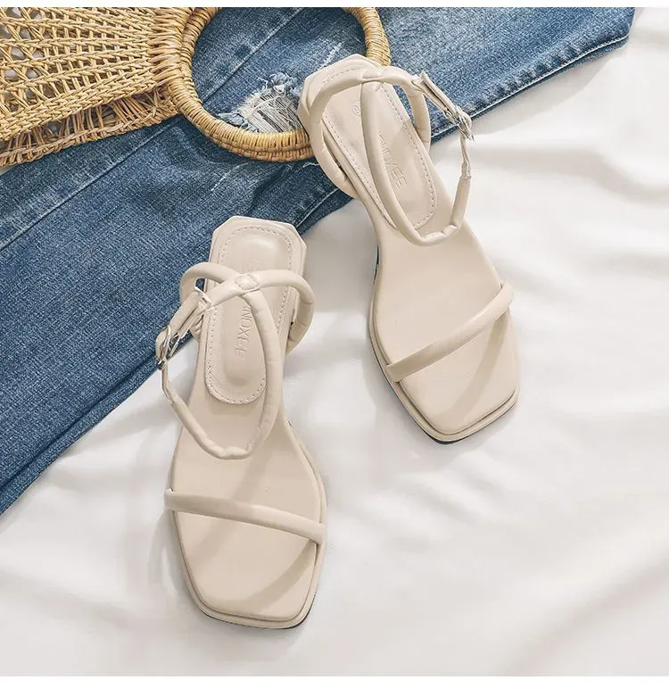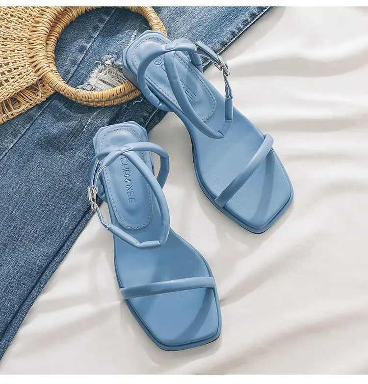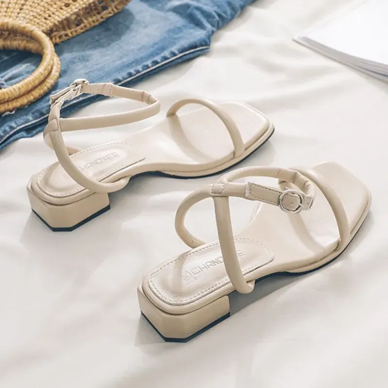 Women Summer Vacation Beach Ankle Strap Buckle Square Low Heel Sandals – Premium Fashion Apparel for Modern Life